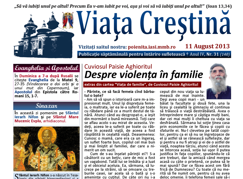 A apărut numărul 31/2013 al publicaţiei parohiale „Viaţa Creştină”.