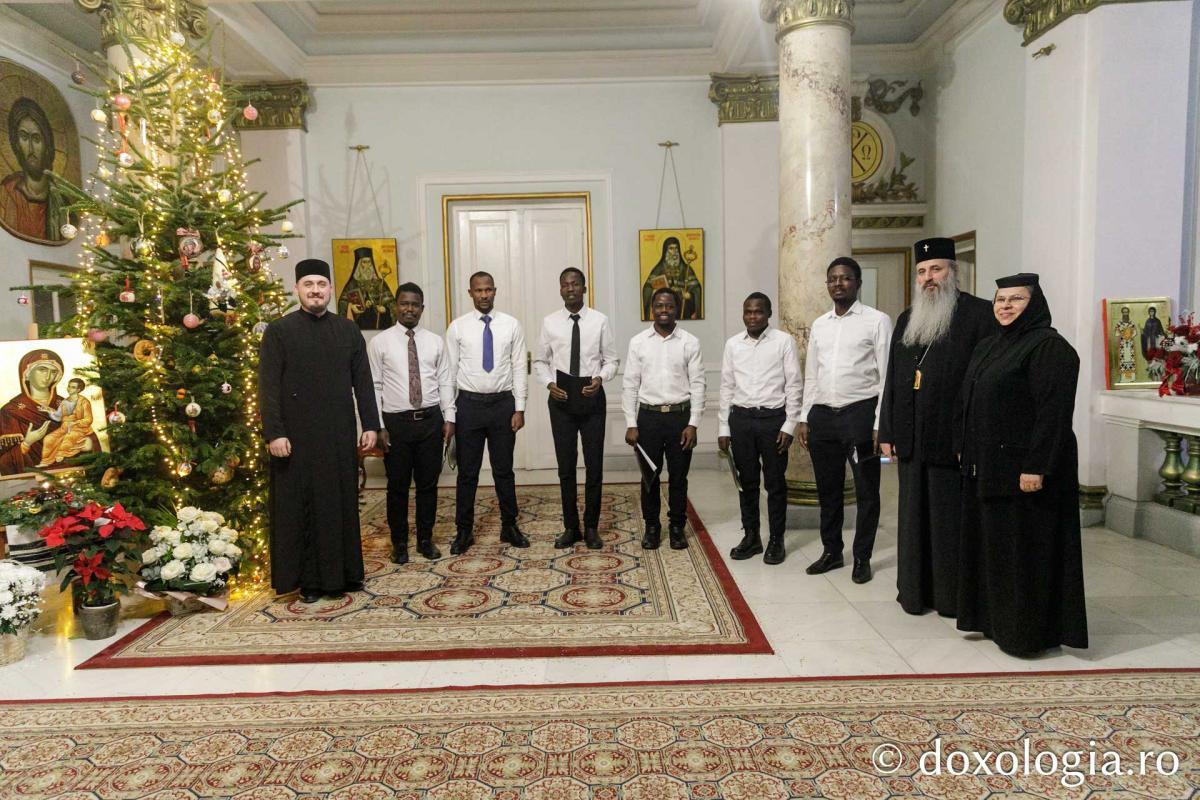Luni, 22 decembrie 2025, la Reședința Mitropolitană din Iași, un grup de studenți africani l-a colindat pe IPS Teofan, Mitropolitul Moldovei și Bucovinei.
