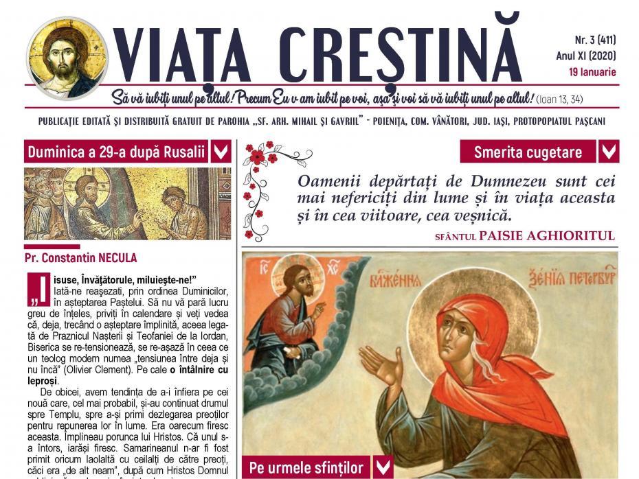 „VIAŢA CREŞTINĂ” este o publicaţie săptămânală editată şi distribuită gratuit de Parohia Poieniţa, Protopopiatul Paşcani, jud. Iaşi.